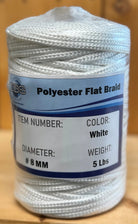 Flat braid polyester twine for marine and industrial use. Strong, abrasion-resistant, easy to handle. Sizes #4–#14 available.